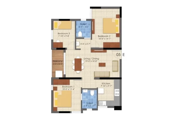 Living, dining and bedrooms will be finished with vitrified tiles -size, pattern and colors as suggested by the architect. o Kitchen, balcony & toilets will be finished with anti-skid ceramic tiles of suitable size.