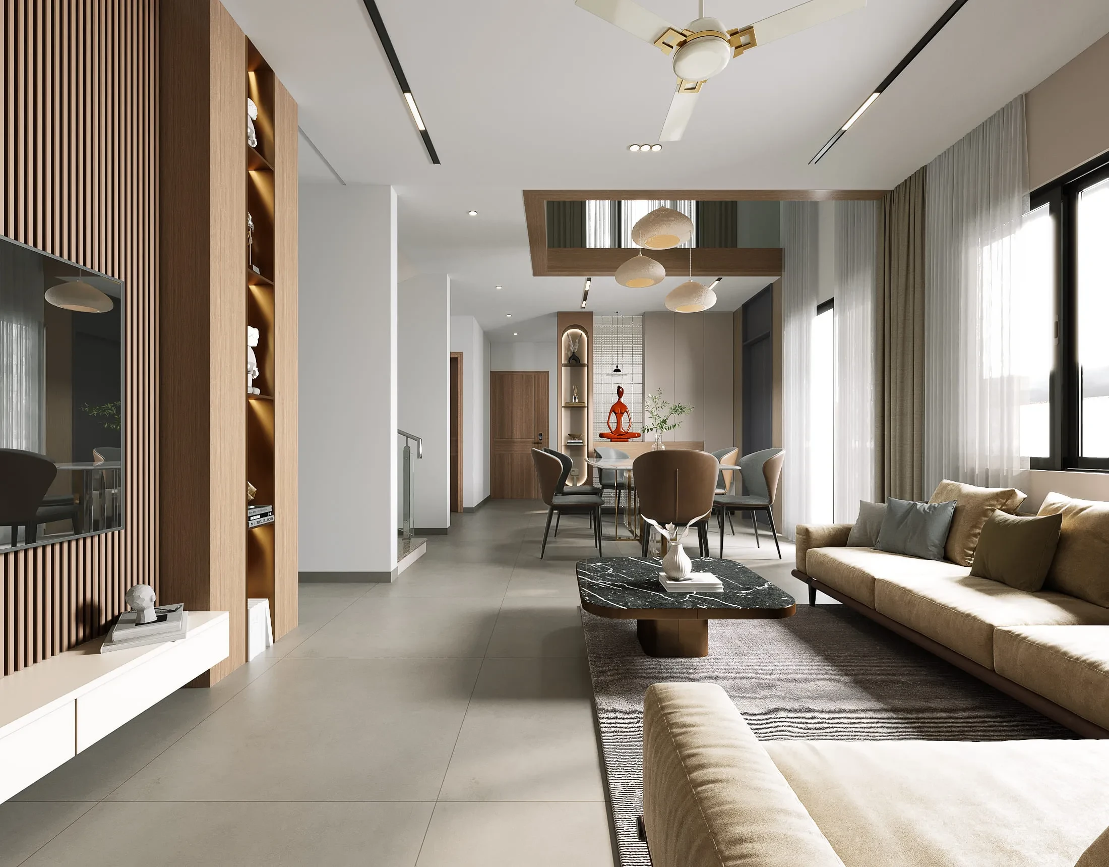 Structural Glazing: Double-height glazing with aluminium frame & 8mm toughened glass.