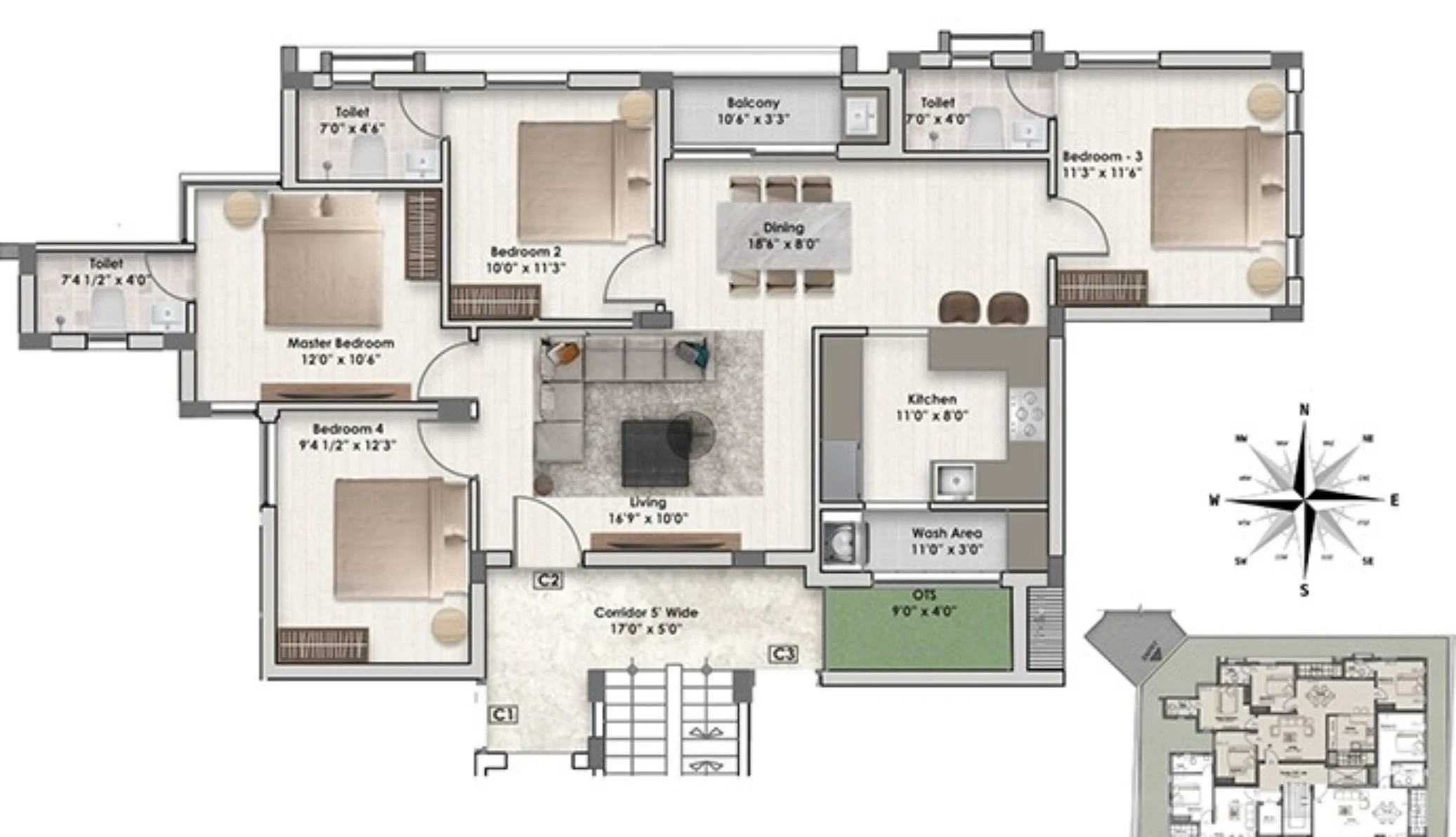 - Unit Configurations: Exclusively features large 4 BHK apartments.