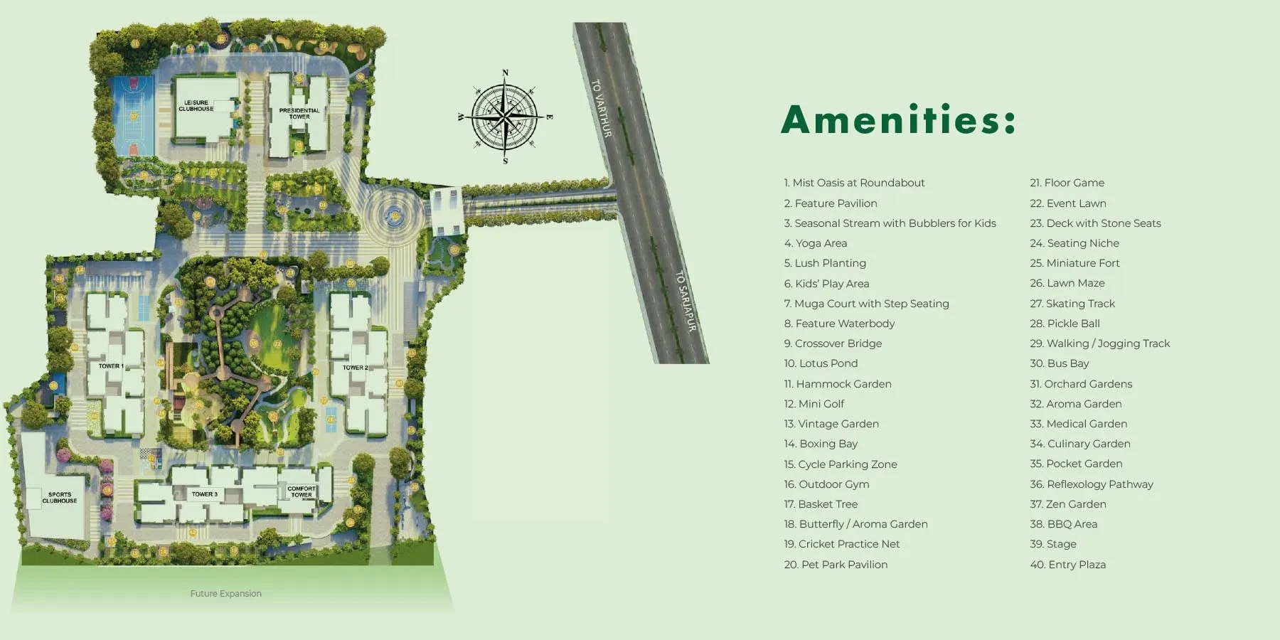 - Key Features: Abhee Aaria in Varthur spans of 12.19 acres and comprises 1017 well-planned Units within a structures community layout.
