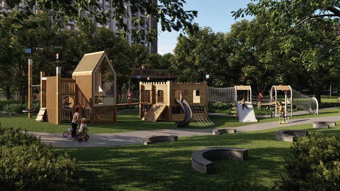 Set amidst an extraordinary natural landscape, Abhee Aaria celebrates green living on a grand scale. With 85% open spaces, a magnificent 2-acre central forest, and a lush oxygen park, the community unfolds as a living sanctuary of wellness. Elevated walkways, tranquil stream gardens, and over nine dedicated healthy-living zones invite residents to slow down and reconnect with nature. Every pathway, garden, and open vista is designed to resonate with the rhythm of the earth, creating a daily sense of renewal and calm.