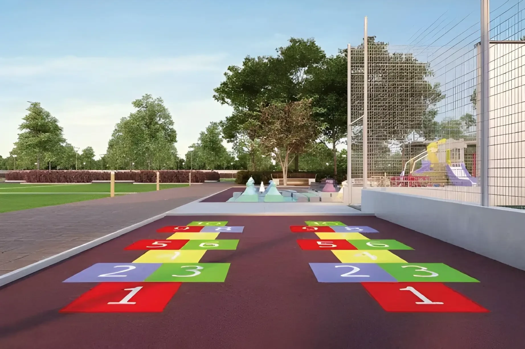 Sports and Fitness: Jogging tracks, outdoor gym, multipurpose court, cricket pitch.