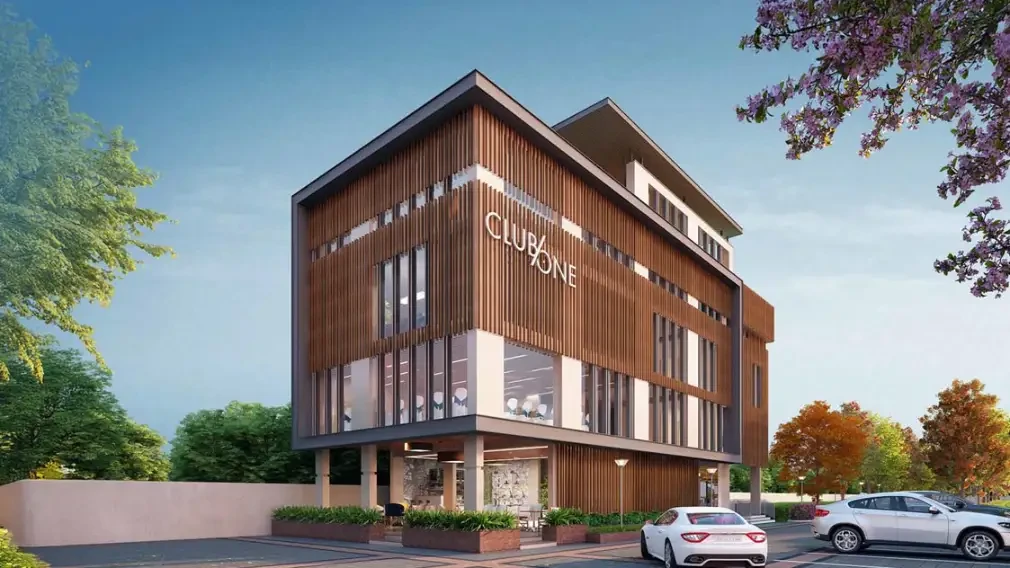Contemporary Clubhouse with swimming pool, reading lounge, spa, gym, children’s play area, party lawn, terrace cafe, multipurpose hall, etc.