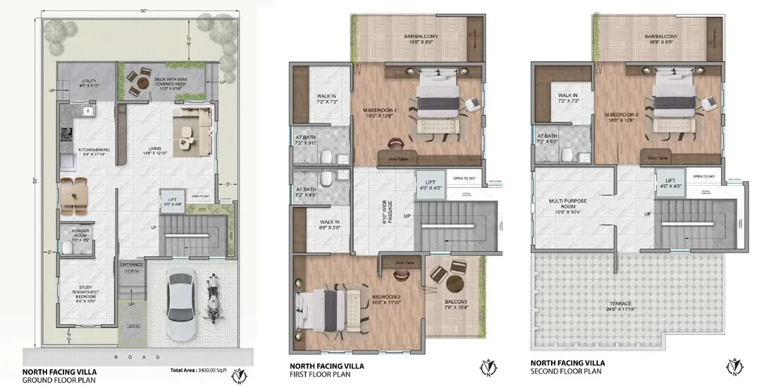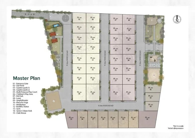 Property Types: Primarily 4 BHK triplex villas with sizes ranging from approximately 2,750 to 4,000 sq. ft.. Some plots are also available within the development.