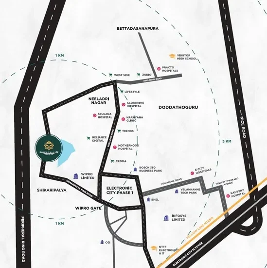 Location: Electronic City Phase 1, specifically near Neeladri Nagar/Shikaripalya, behind the Wipro Campus.
