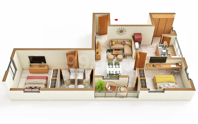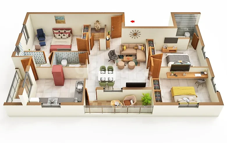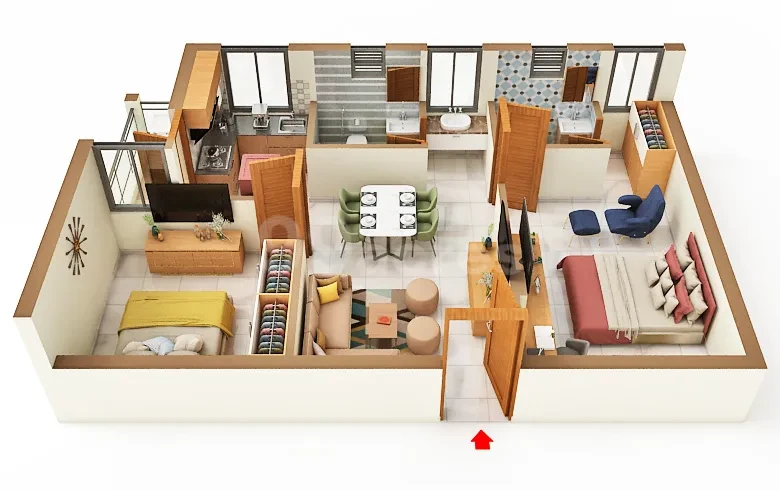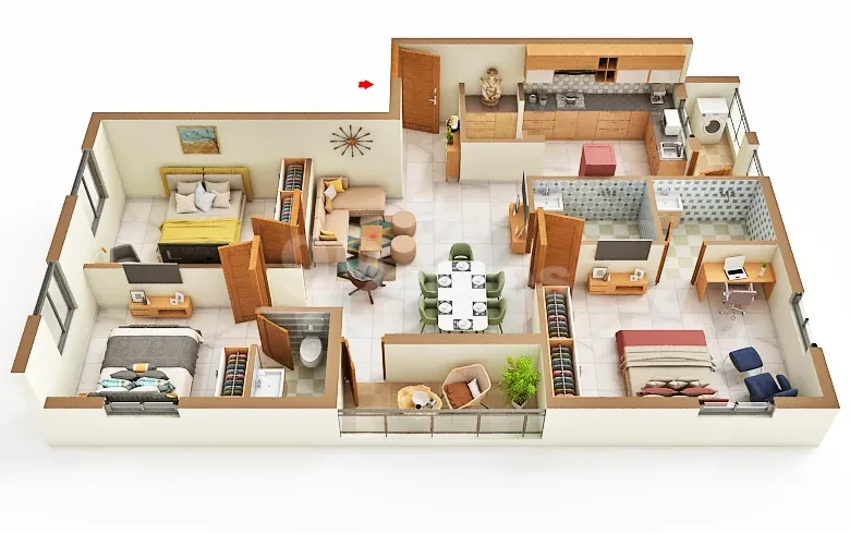French window.Electrical points.T.V. point.Split A.C. provision.D B box with circuit breakers and 3 phase changeover switches.Chandelier light point.Calling Bell provision.DOORS & WINDOWSMain door - Teak wood frame with panel designed doors.Main door - Eye viewer, Brass tower bolt, Bullet lock, door magnet.Bedroom doors - Teak Wood frame with Country Wood designed doors.Toilet door - Solid PVC door with accessories.Windows - French UPVC Windows.BEDROOMSR.C.C. Loft 2' depth.Electrical PointsSplit A.C. provision.FLOORINGVitrified Tiles Plain Colors (2' x 2') for all rooms.Skirting for 4".KITCHENR.C.C. Loft 2' depth.Black Granite slab with beading.One metro water and one bore water tap provision.Wall tiles - Glassed tile with border up to 4'6" above the platform.PAINTINGInterior wall fully 2 coats of putty one coat of primer with 2 coats of Emulsion PaintingTOILETSWash basin- Parryware White Color.Parryware Cascade - Floor mounted. Walls glassed tiles upto 7' height from floor level (Tile size - 16" x 10") with border.. Health faucet.Exhaust fan provision & Ventilator with luver glasses.Flooring - Anti-skid tiles. (12" x 12").Chromium plated (Tap) fittings Parryware or Something special.