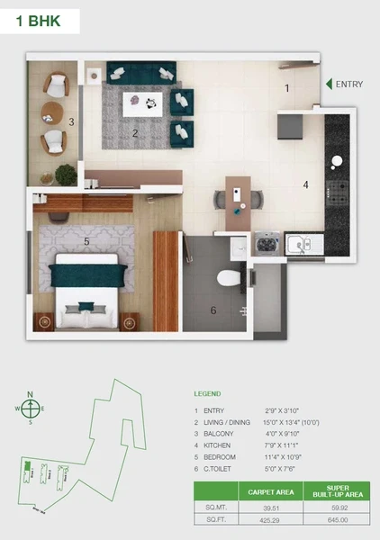 1 BHK: ~645 sq. ft. starting from ₹72.89 Lakhs.