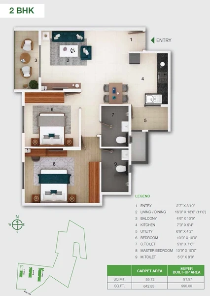 2 BHK: ~990–1,020 sq. ft. starting from ₹1.12 Crore.