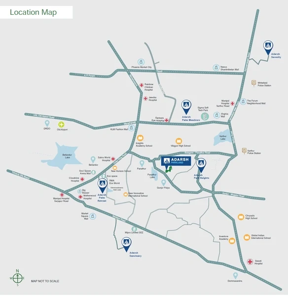 - Key Features: Adarsh Parkland in Panathur road spans of 7.25 acres and comprises 644 well-planned Units within a structures community layout.