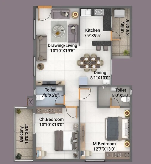 Super Built-Up Area : 1160 Sq.ft, 1245 Sq.ft, 1285 Sq.ft, 1470 Sq.ft
