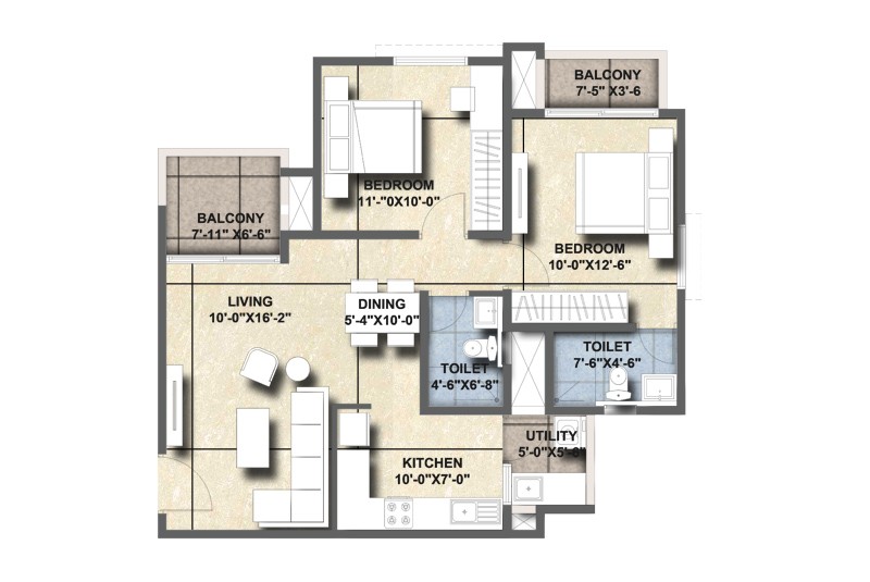 Master Bedroom-WallsOil Bound DistemperMaster Bedroom-FlooringVitrified TilesOther Bedrooms-FlooringVitrified TilesWallsOil Bound DistemperLiving Area-FlooringVitrified TilesStructureRCC Frame Structure