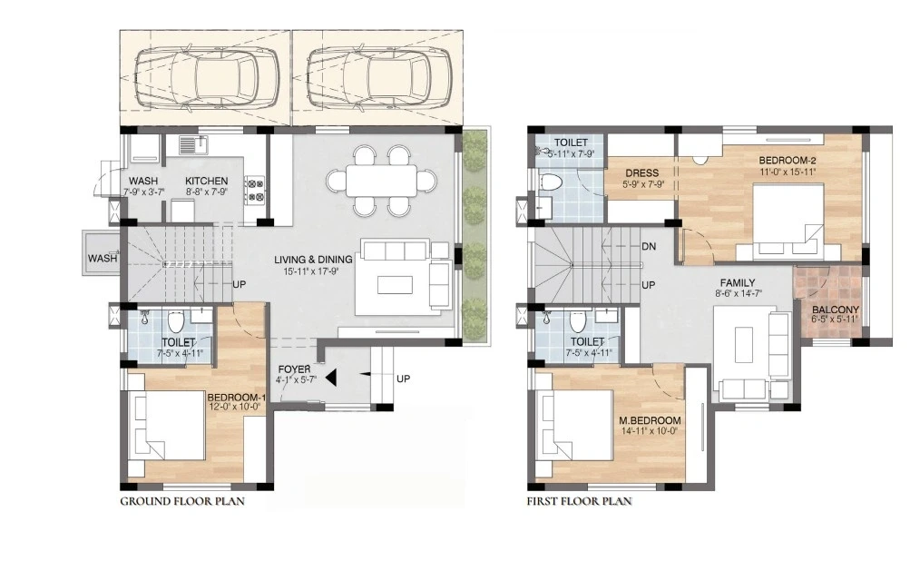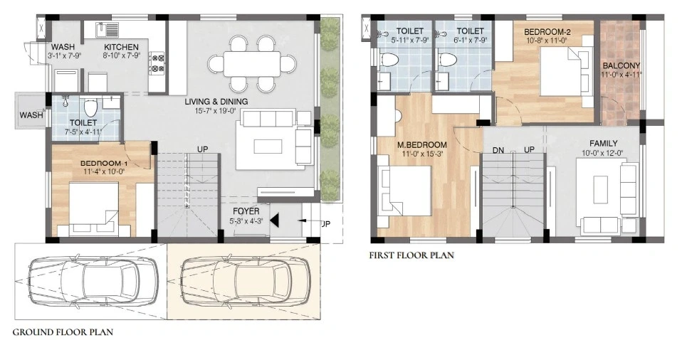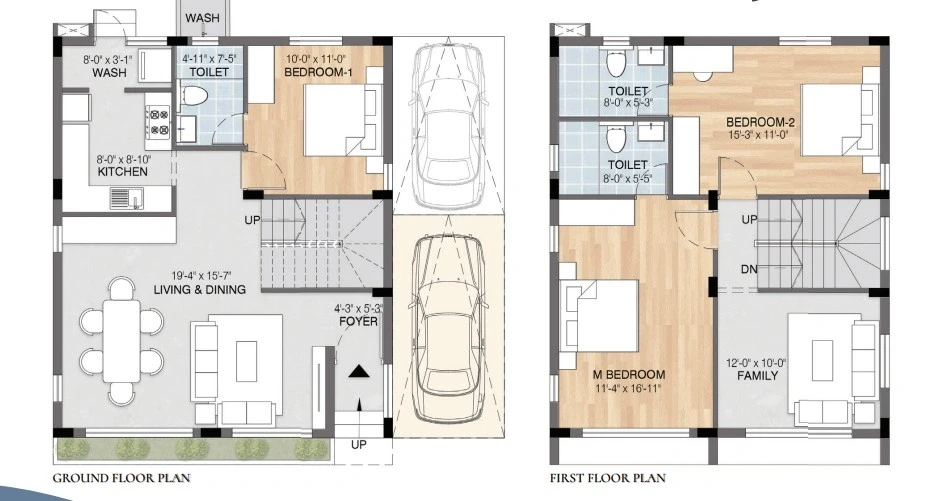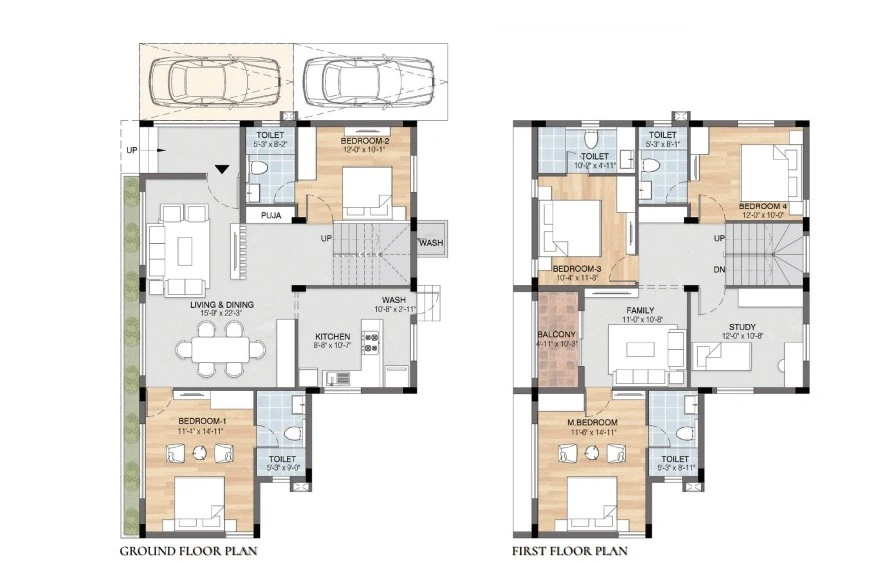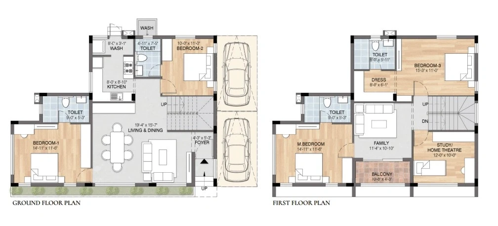 Sizes: Villas range from approximately 1,590 sq. ft. to 2,372 sq. ft. of built-up area.