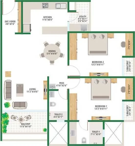 | 2 BHK | 1337 Sqft | Rs : 2.1 Cr |