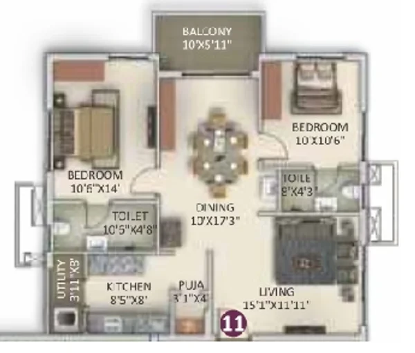 Configuration: 2BHK, 2.5BHK & 3BHK Apartments