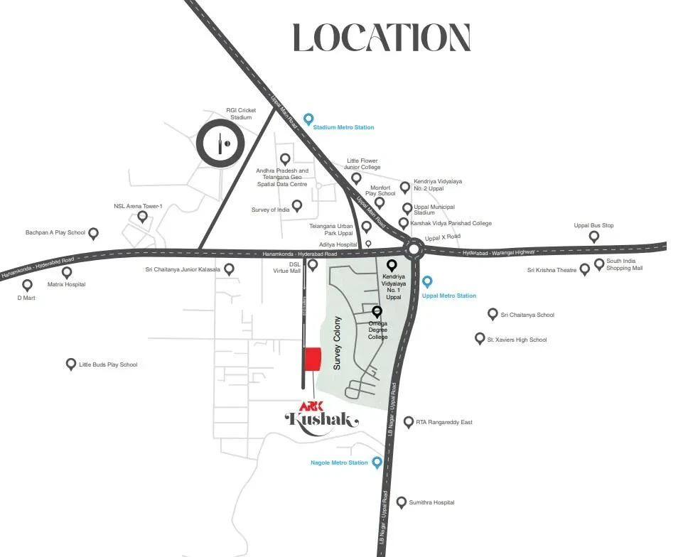 - Key Features: Ark Kushak in Uppal spans of 1.1 acres. acres and comprises 106 well-planned Units within a structures community layout.
