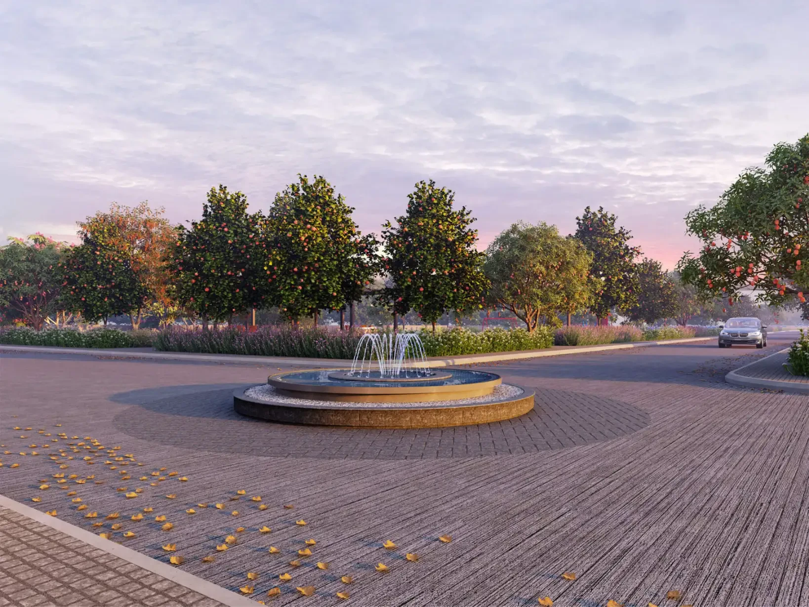 The project stands out for its unique orchard theme, where each plot is adorned with fruit trees like Mango, Avocado, and Pomegranate.