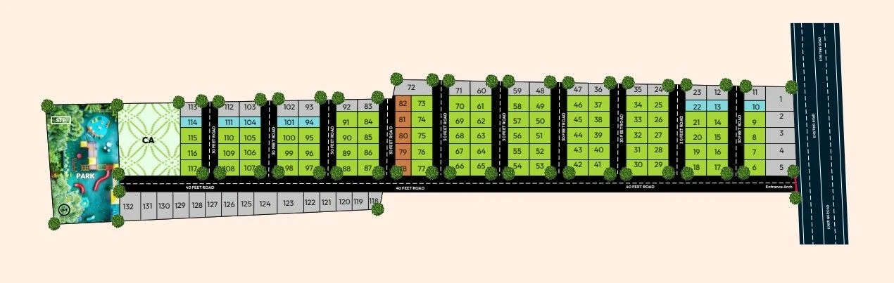 Plot Sizes: Residential plots typically range from 1,200 to 1,500 sq.ft..