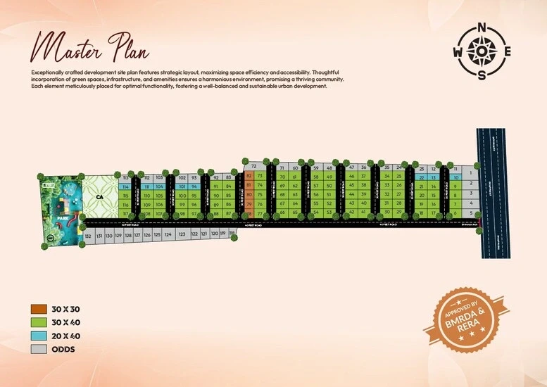 Approvals: The project holds BMRDA (Bangalore Metropolitan Region Development Authority) and RERA (Real Estate Regulatory Authority) approvals, ensuring legal transparency and security for buyers.