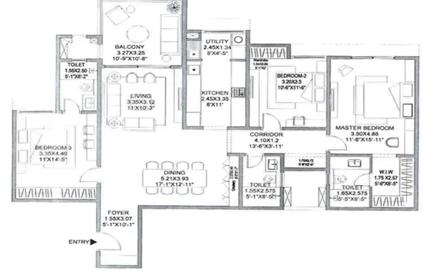 3BHK Tower: 3 no. passengers lifts and 1 no. service Lift per core of reputed make.