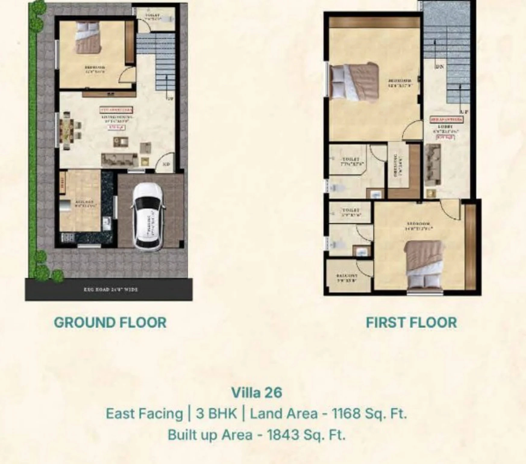 - 3 BHK: 1,344 - 1,843 sq. ft. (Approx. ₹1.45 Cr - 1.98 Cr)