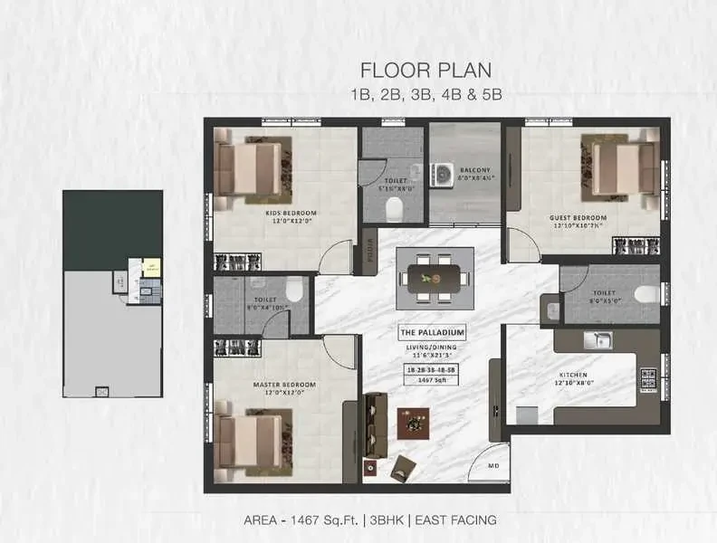 Exclusivity Awaits You at ATH The Palladium by Asset Tree Homes 3 BHK and 4 BHK flats are available, with sizes of 1467 sq. ft. to 2158 sq. ft. It provides you with ample space to live life at its best. With only 10 units, you are going to be part of an exclusive community. No overcrowding here! Nothing less than convenient parking for the car, lift for easy convenience and complete security with CCTV cameras. A stilt + 5 Floors structure ensures maximum privacy while getting you close to everything you love. Imagine living in a peaceful and comfortable lifestyle, making every resident fulfill their dreams. Don't let your dream home slip away! Reserve your ATH The Palladium in Ekkaduthangal and make the move to luxurious living in Chennai!