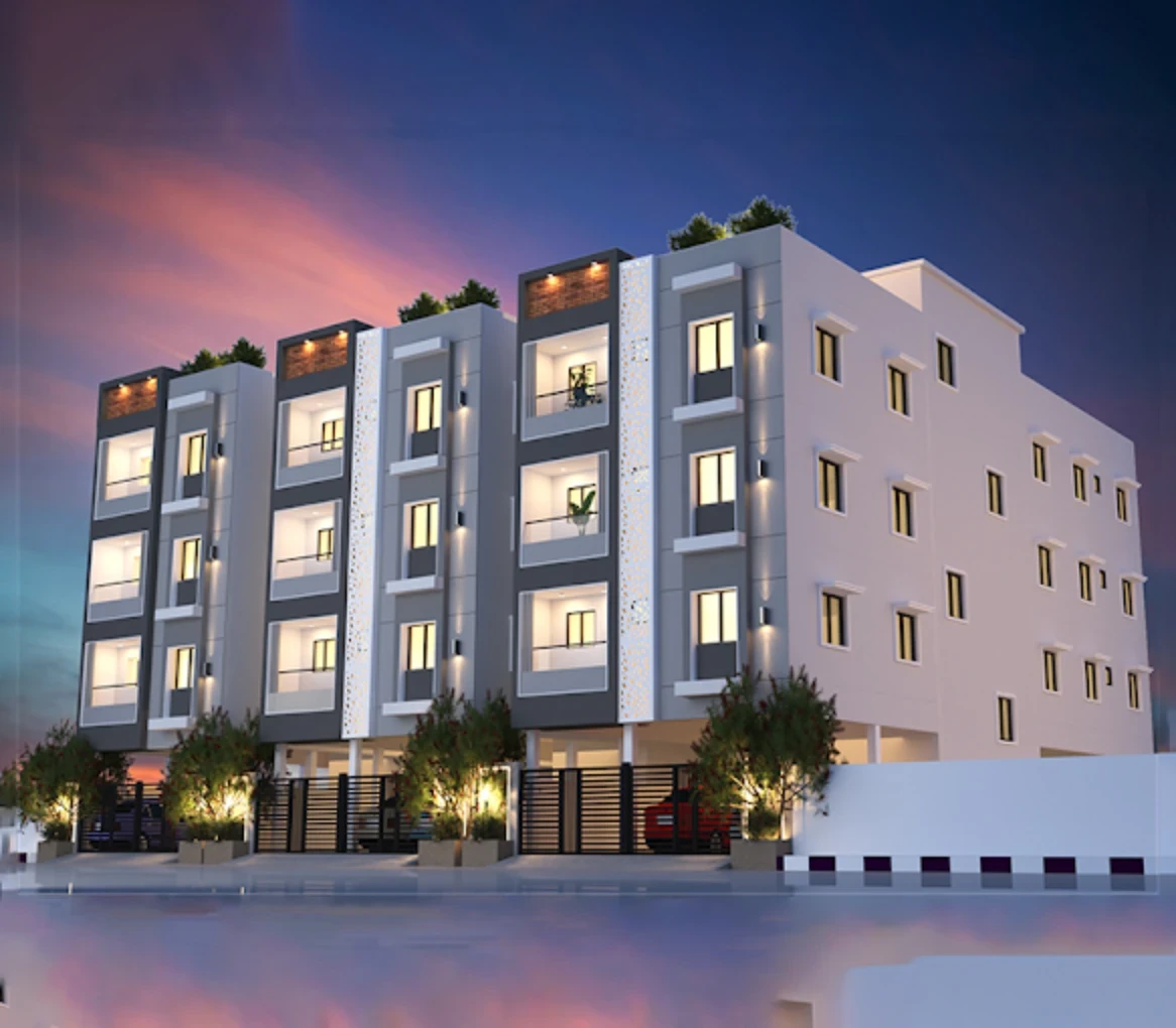 BC Bhagyam in Pammal, Chennai, developed by Bharathi Construction, offers premium 2 and 3 BHK apartments (980 - 1140 sq.ft.) featuring RCC-framed structure, 100% Vaastu compliance, and high-end finishes like Orient Bell tiles, teak wood doors, UPVC windows, and Asian Paints. It includes amenities like covered car parking, and 24/7 security.Key Project Specifications: