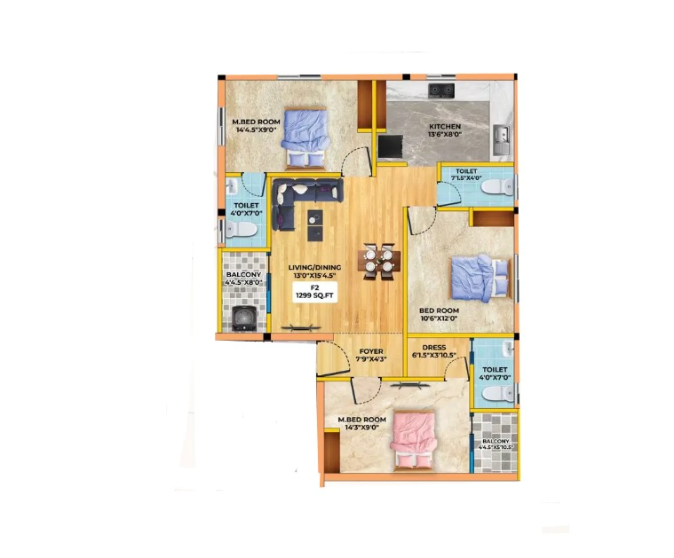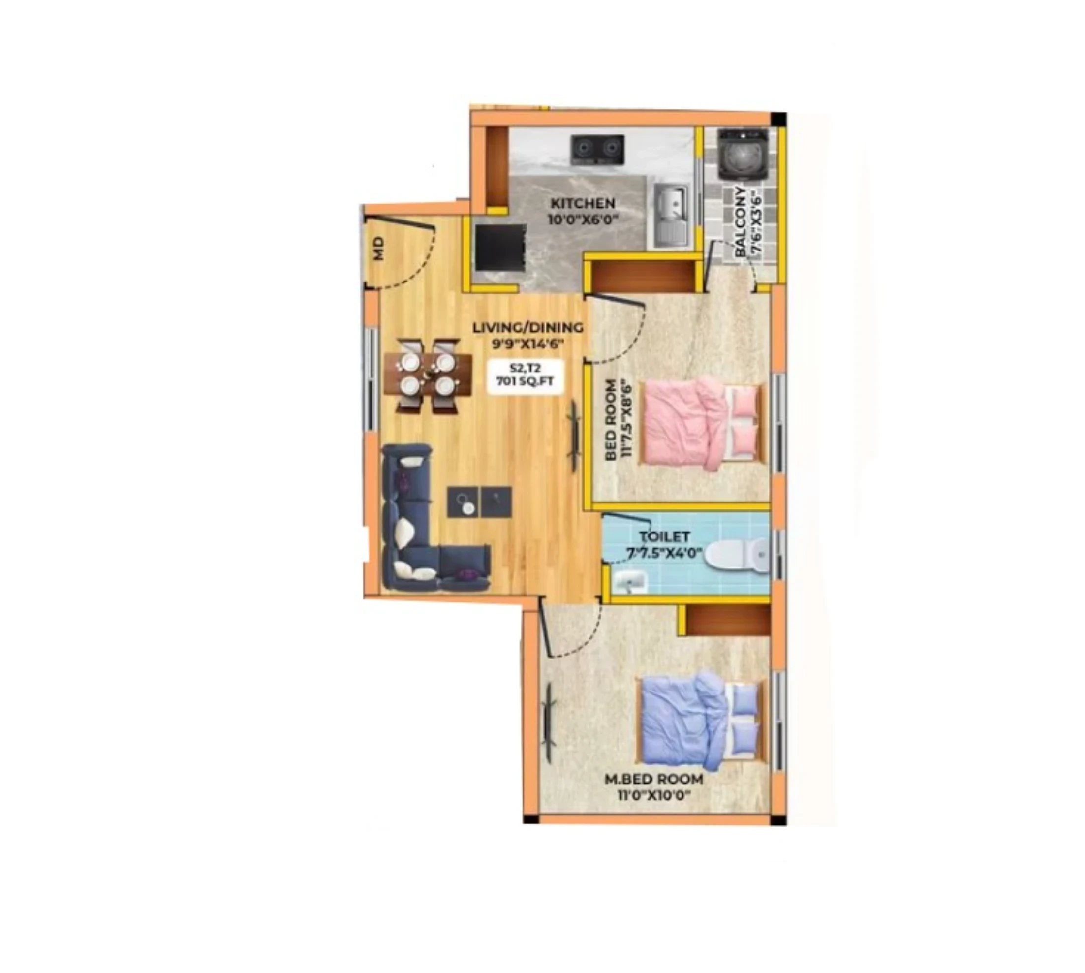 Live well in a modern home that features excellent natural light and great design. The homes range from well-sized 701 sq ft to 1299 sq ft. The project has also been designed with modern amenities for ease, comfort, and improved everyday living. BC Navaratna in Polichalur offers a great balance of affordability, smart, and modern living spaces.