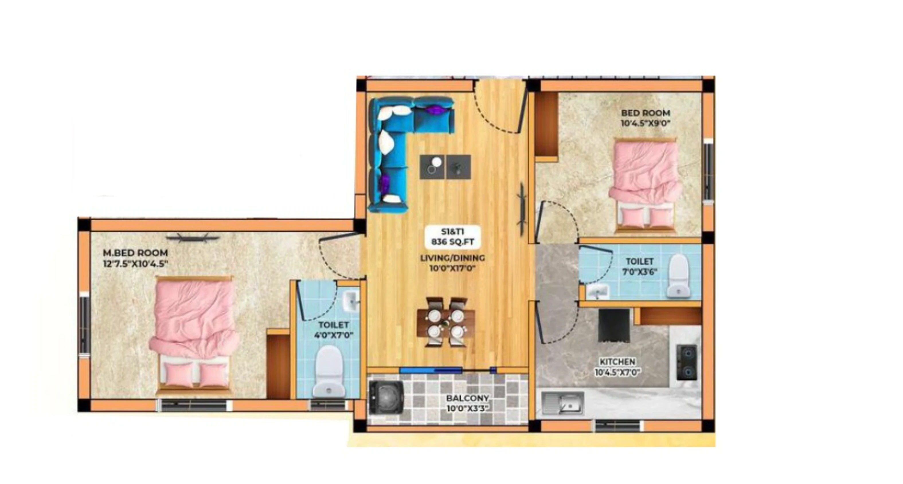 Unit Configurations & PricingConfiguration Size (Sq. Ft.)Starting PriceFacing1 BHK475₹33 LNorth2 BHK792 – 858₹56 LNorth & East3 BHK1186₹81 LEast