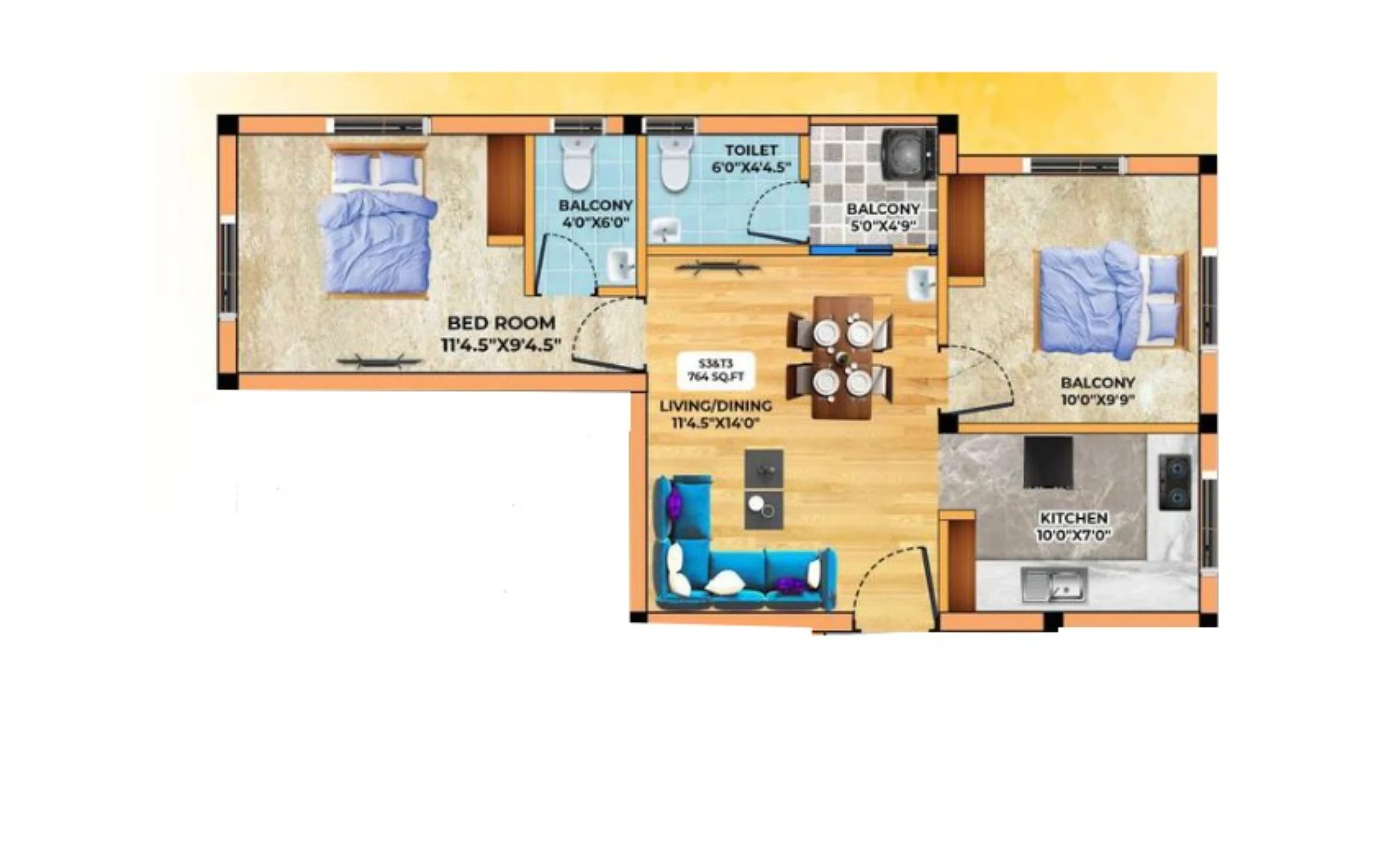 764 to 1185 Sq.Ft Sq.Ft