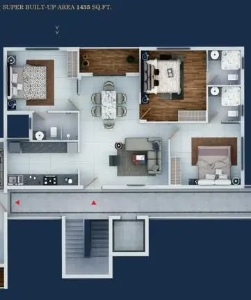 | 3 BHK | 1435 Sqft | Rs : 1.18 Cr |
