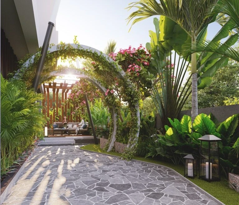 Lifestyle: Landscaped garden, kids' play area, banquet hall, guest accommodation, and a private terrace/garden option.