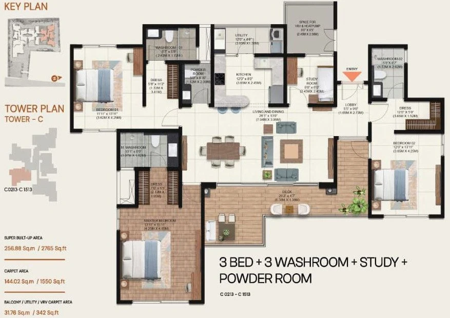 Configuration: Features three towers (Basement + Ground + 15 to 17 floors) housing approximately 206 to 400 units.