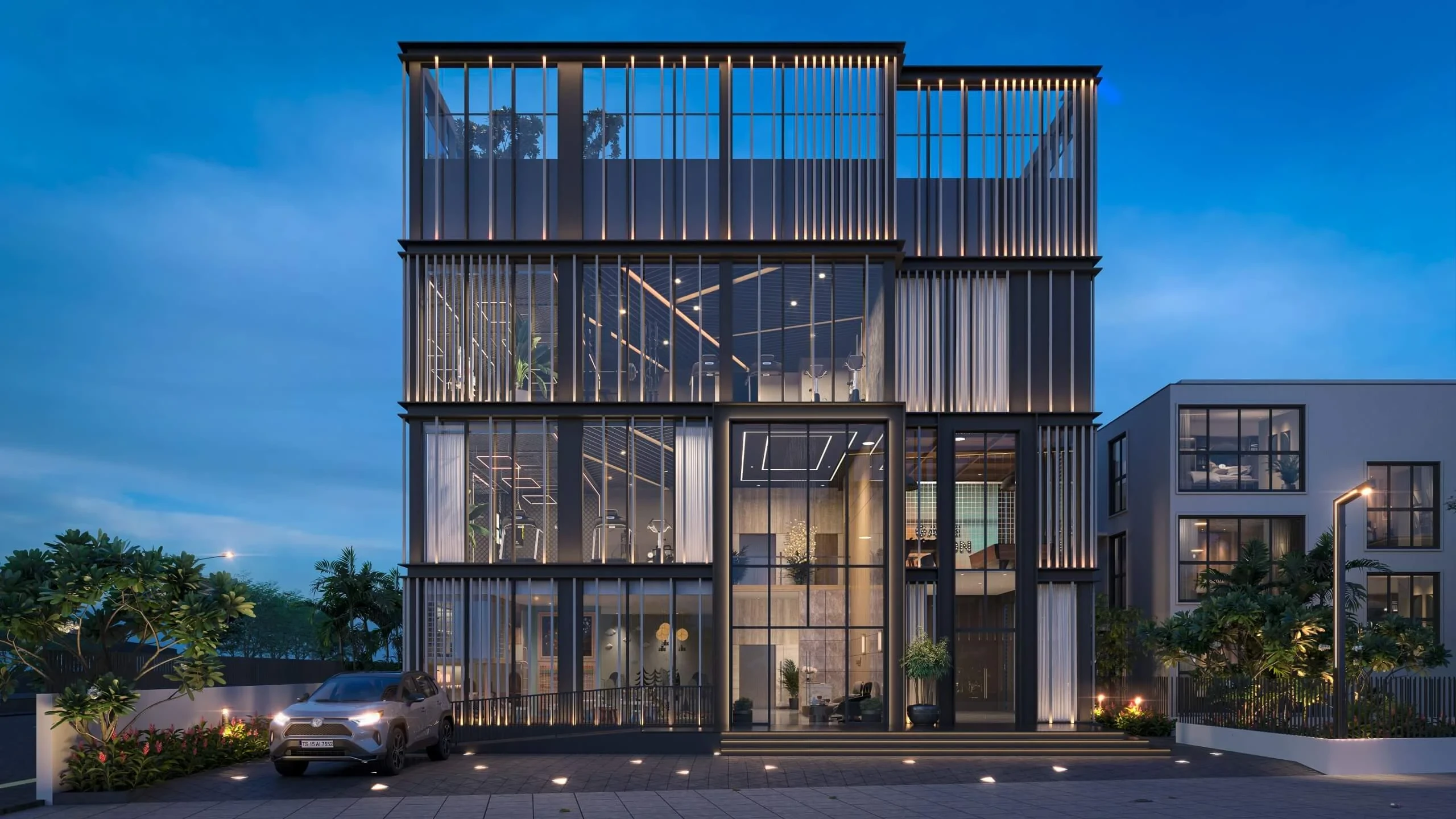 - Every floor has a family space like living, lounge, lobby, open terrace with pergola and barbecue counter