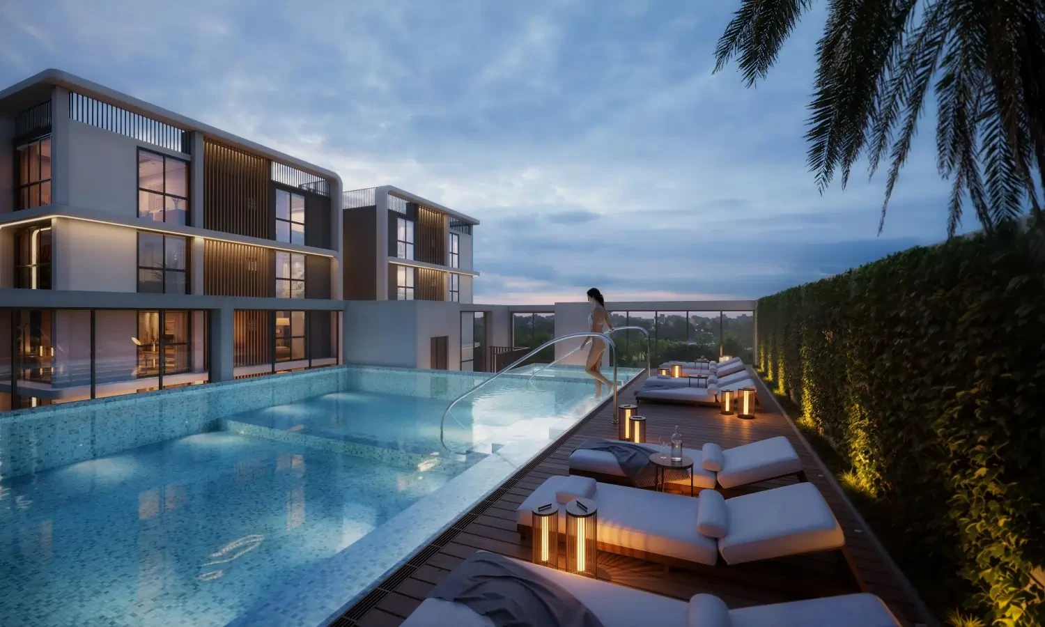· Enjoy 1,571 sq ft of dedicated rooftop swimming pool area with relaxing and rejuvenating poolside amenities.