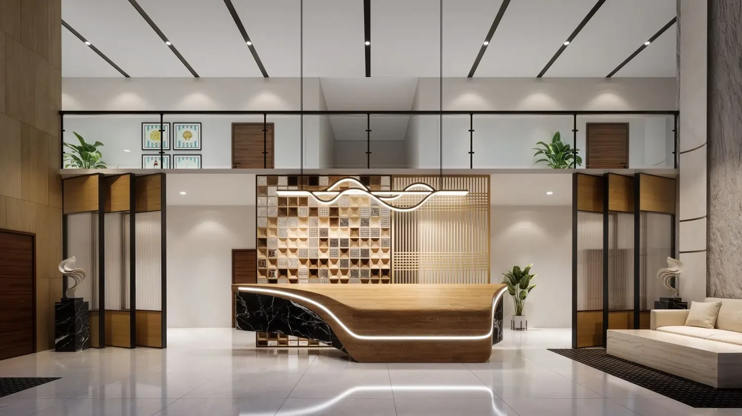 - Lift Lobby: Designer vitrified tile finish