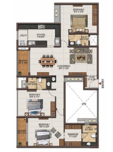 The community has 65% open space and 3 grand podiums with lush green belt for ample light and ventilation