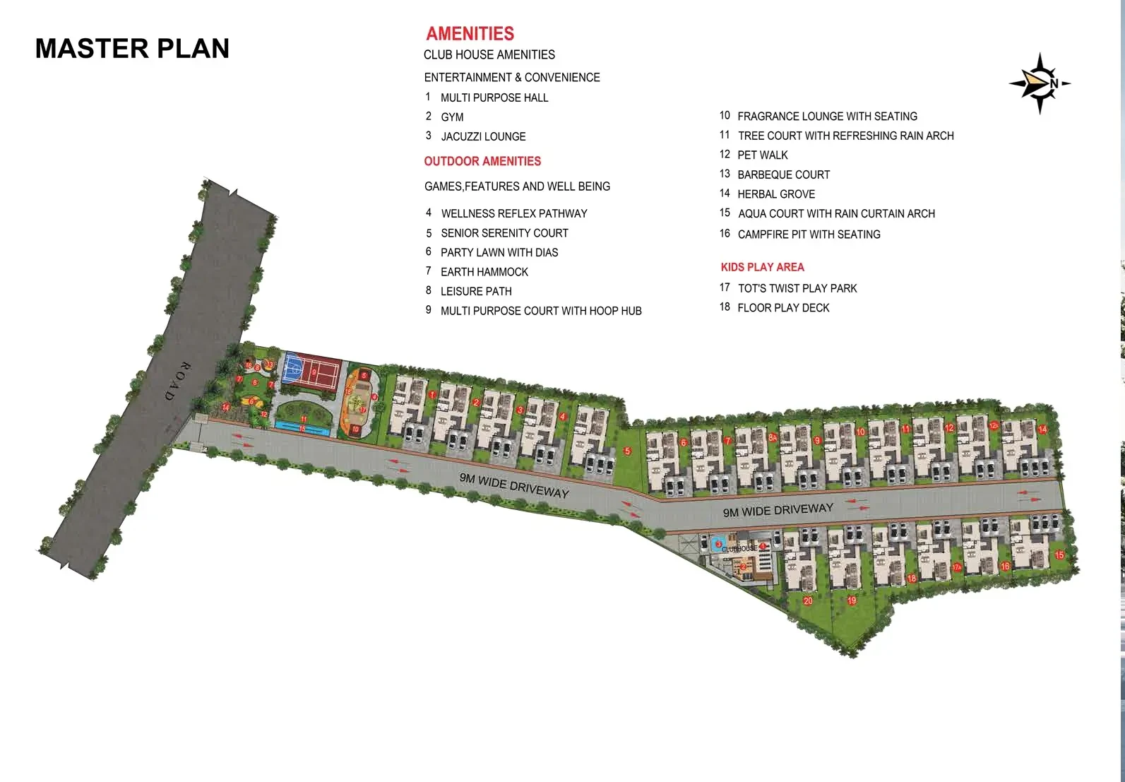 3. A premium community of 20 villas set on 2 acres, featuring a clubhouse and inviting landscaped green spaces.