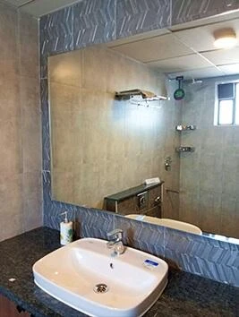 Bathroom walls: Ceramic Tile finish up to false ceiling height, above false ceiling finished with a coat of primer.