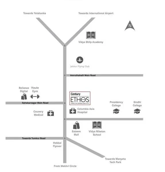 Century Ethos is a super-luxury residential development in Hebbal, North Bengaluru, designed by the American architectural firm HOK. Spanning approximately 7.3 acres, the project emphasizes "contemporary architecture" and the "luxury of space," with 80% of the land dedicated to curated green areas and open spaces.
