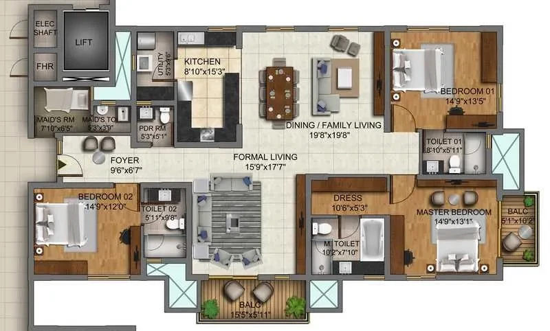 4 BHK: 4,235 to 4,940 sq. ft..