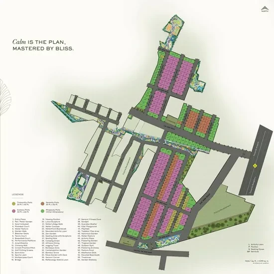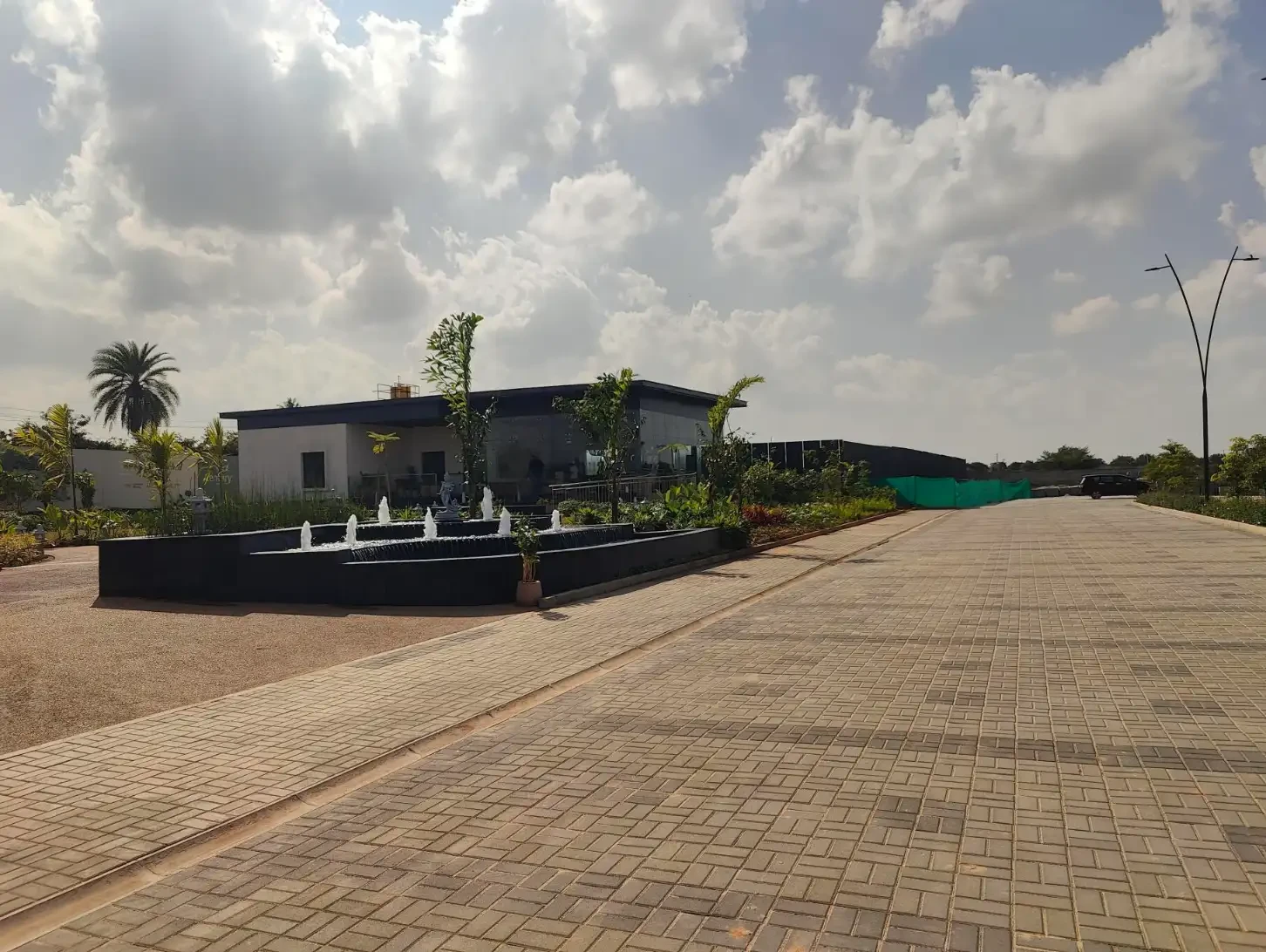 Infrastructure: Wide asphalted internal roads, underground utility networks (water, power, drainage), LED street lighting, and a gated entrance with 24/7 CCTV security.
