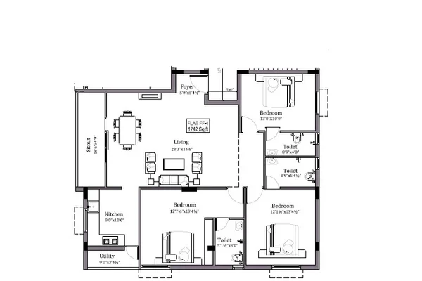 Welcome to Charan 2, crafted by MS Charan, an exclusive low-density development located at Perungalathur, Chennai. This exclusive offering only has 8 thoughtfully designed, low-density flats that guarantee you and your family a comfortable, quiet, and personal environment in your own home. This project offers spacious 2 BHK homes or 3 BHK homes with usable areas of 958 sq ft to 1742 sq ft for you and your family that fit a modern lifestyle with room to grow. The new Stilt + 3 floors development.