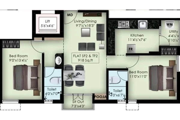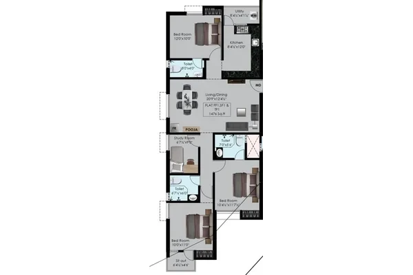 The unit size of these apartments starts at 882 Sq.Ft and goes all the way to 1476 Sq.Ft. Each apartment here opens out to a beautiful balcony and also enjoys lifts and car parks in the stilt level. Located in a mid-segment locality, these flats are also affordably priced and are a wonderful choice for those on a tight budget.