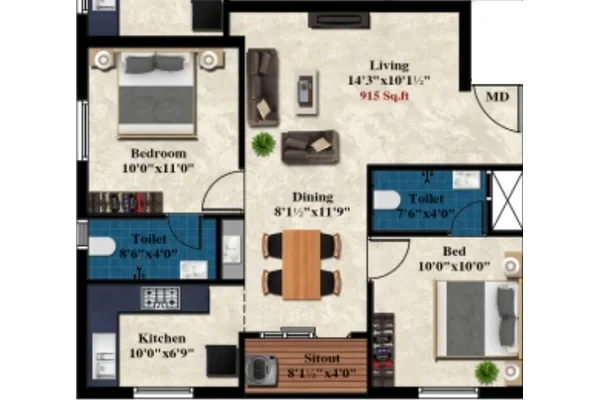 Charan Viruksham developed by MS Charan Nestled in the fast-developing neighbourhood of Madhavaram, Chennai, offers thoughtfully designed 2 BHK flats. With only 12 exclusive units, the project ensures a close-knit community and ample privacy for residents. Each flat ranges from 774 sq.ft to 915 sq.ft, making it ideal for nuclear families and first-time homeowners seeking a comfortable and functional living space.
