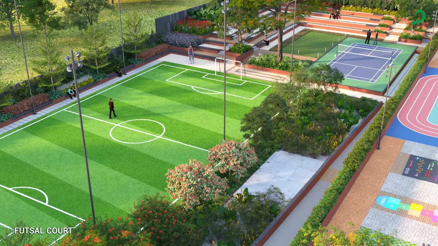 Wellness Amenities: Includes a pet park, futsal court, cricket pitch, skating rink, yoga deck, and a reflexology park [7, 9, 16]