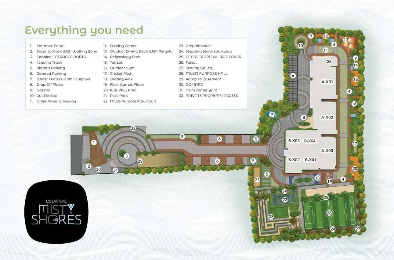 - Key Features: CoEvolve Misty Shores in Pattandur Agrahara spans of 2.17 acres and comprises 153 well-planned Units within a structures community layout.