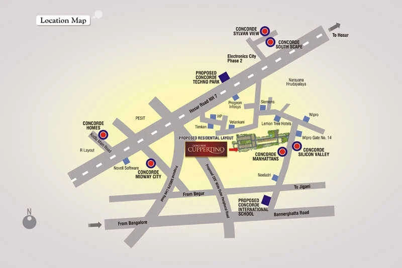 Concorde Cuppertino is a luxury residential villa project by the Concorde Group located in Electronic City Phase I, Bangalore. The project is fully completed and ready-to-move, with families residing there as of early 2026.