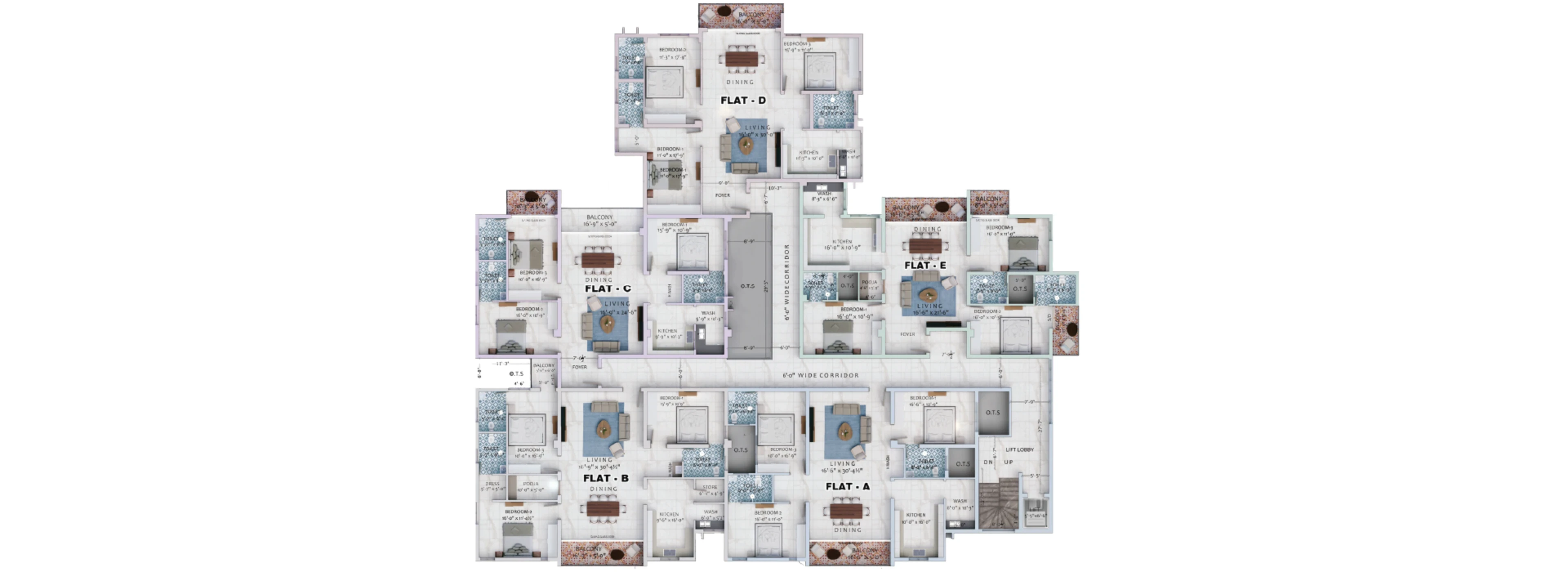 Dhiya Kalpataru is a multi-story apartment developed by the Dhiya Foundation, in one of Coimbatore city's well-loved residential and commercial hubs. Located close to the city center, this is a premium residential development brought about by a well-known real estate developer. This apartment complex is entirely composed of 3 BHK flats, and they all feature lavish carpet areas. Overall, there are 20 flats in this community and they all open out to beautiful balconies and boast ultra-modern designs. The unit size of these flats ranges between 1970 - 2132 Sq.Ft, sot share a fine choice for those searching for roomy quarters. Each apartment owner enjoys a car park on the stilt level, and lift access. Located in Sanganoor these apartments enjoy several prime amenities and are also engulfed by much more affluent neighborhoods like Sai Baba Colony. If you wish to live right next to the city center and enjoy all prime amenities, do come and check out these urban-styled residences.