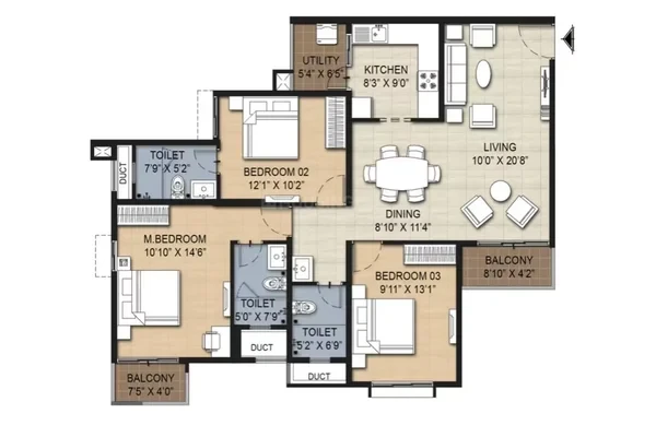 FLOORING Wooden flooring in master bedroom BATHROOMS Shower partition in attached toilets, Jaquar Florentine CP fittings, ROCA sanitaryware, table top wash basins DOORS AND WINDOWS Polished/laminated designer flush doors FINISHES Renova texture paint for exteriors ELECTRICAL DTH connectivity, Wi-Fi connectivity OTHERS Piped gas connection with limited backup power, balcony railings