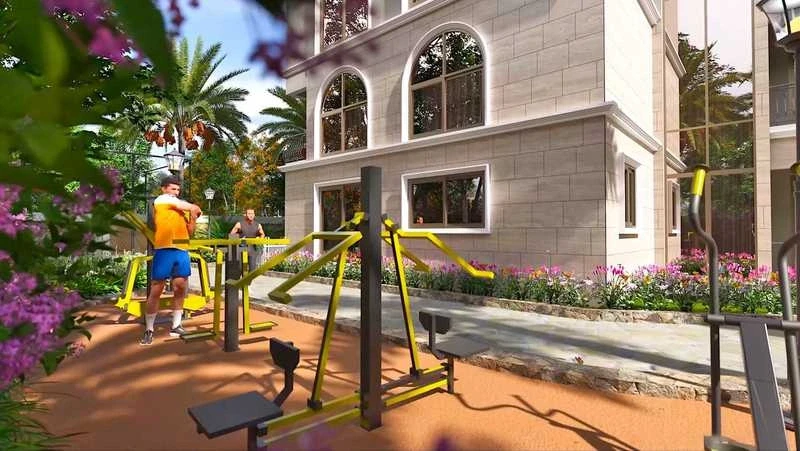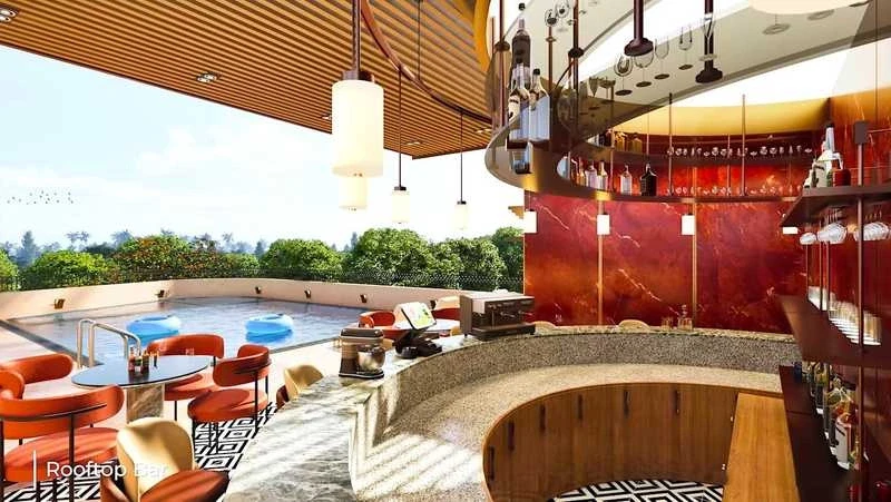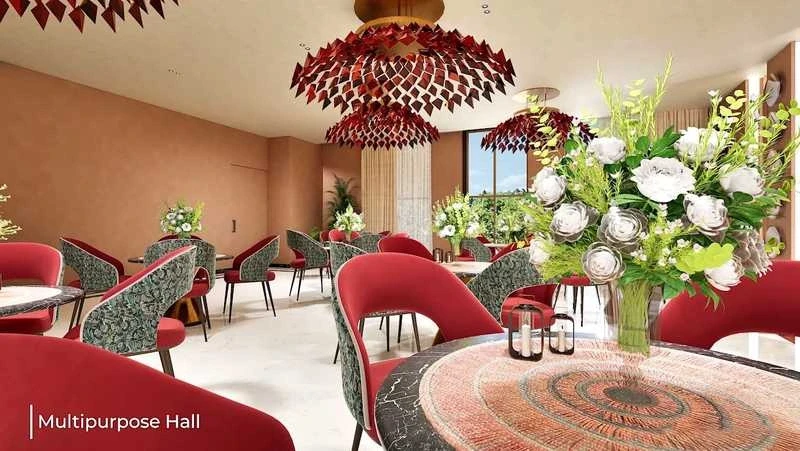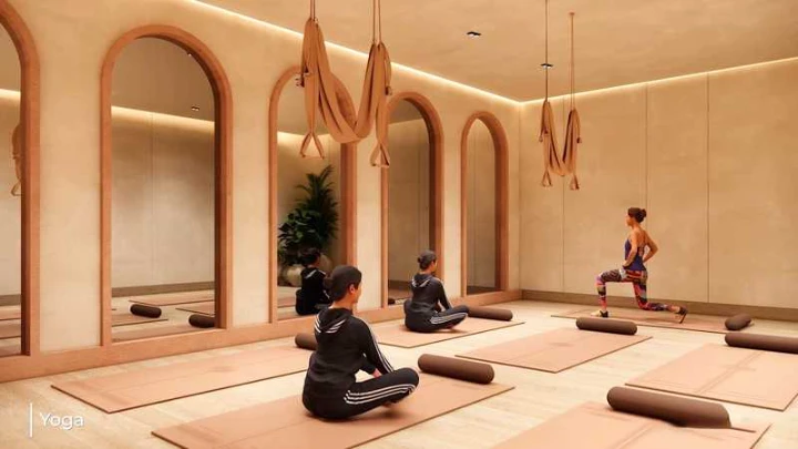 Wellness: Swimming pool, gymnasium, yoga deck, and meditation hall.